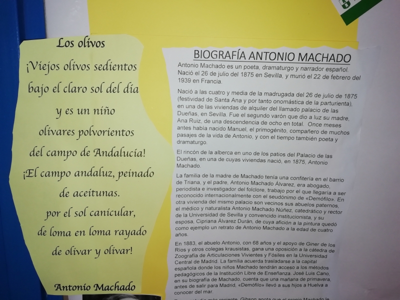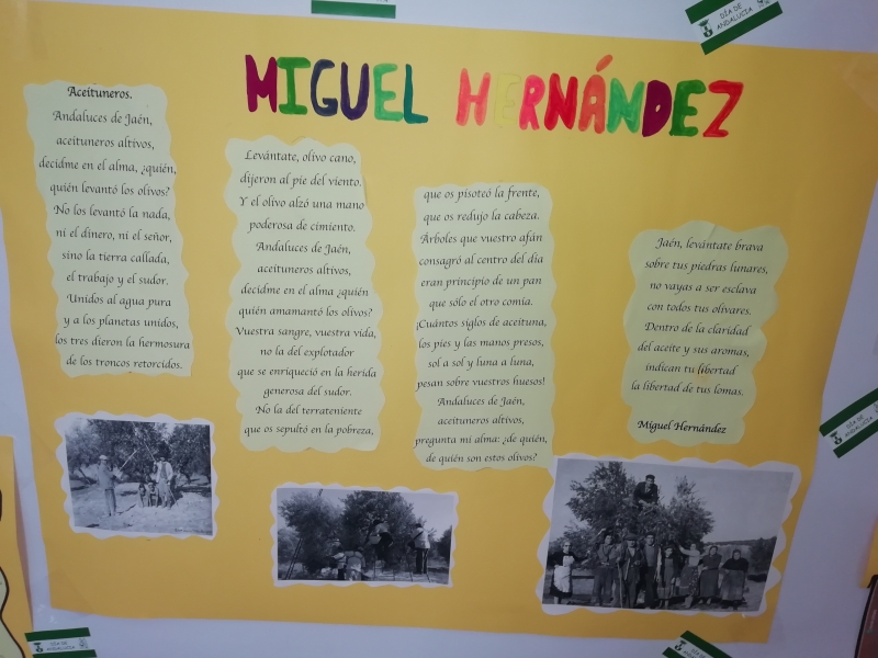 El alumnado de Secundaria, coincidiendo con la celebración de Andalucía, ha trabajado la inspiración del olivar y su paisaje en poetas andaluces de la Literatura Contemporánea de las generaciones del 98 y del 27. También han analizado el poema de Miguel Hernández “Aceituneros”.