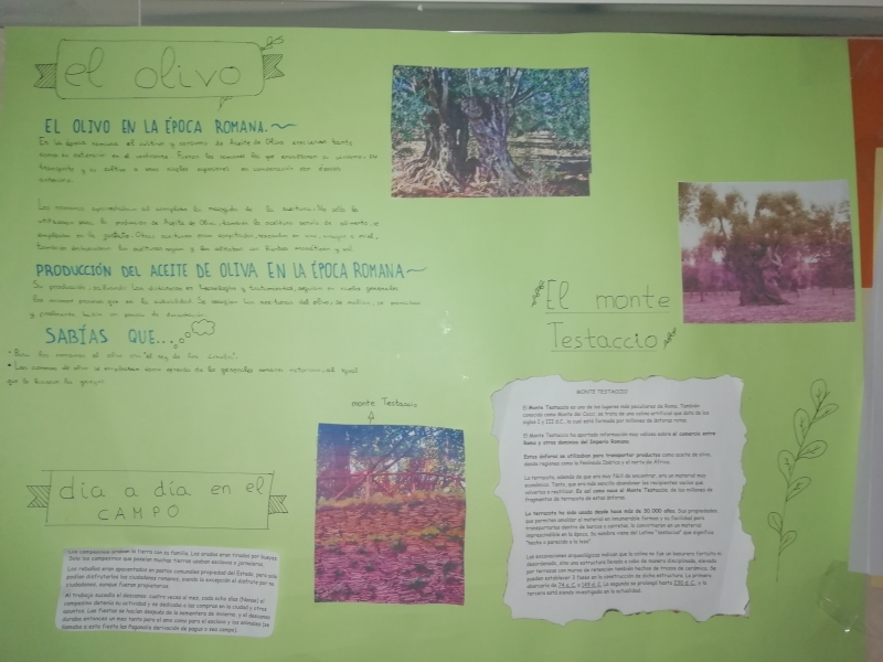 Secundaria ha hecho un estudio del olivar desde las explotaciones romanas hasta la Edad Media, valorando los circuitos comerciales del aceite en Roma y las aplicaciones del aceite en la gastronomía, la cosmética y la medicina.
