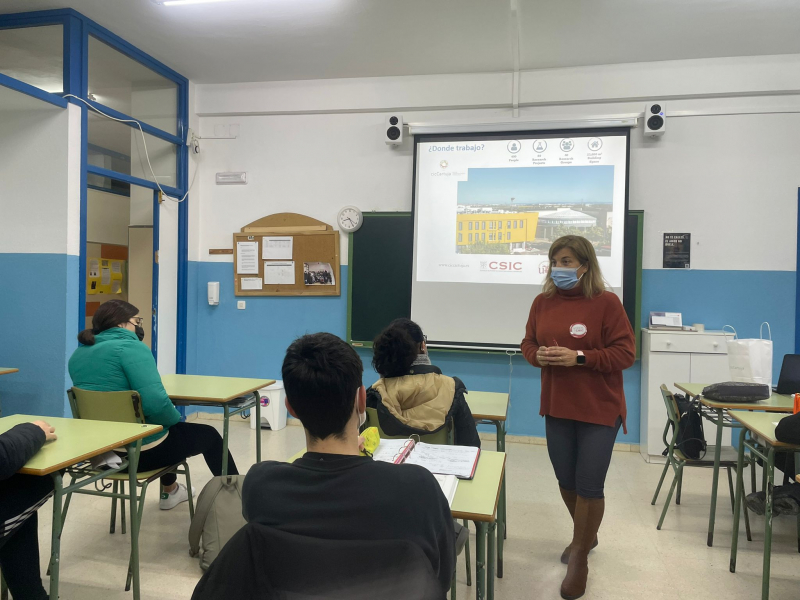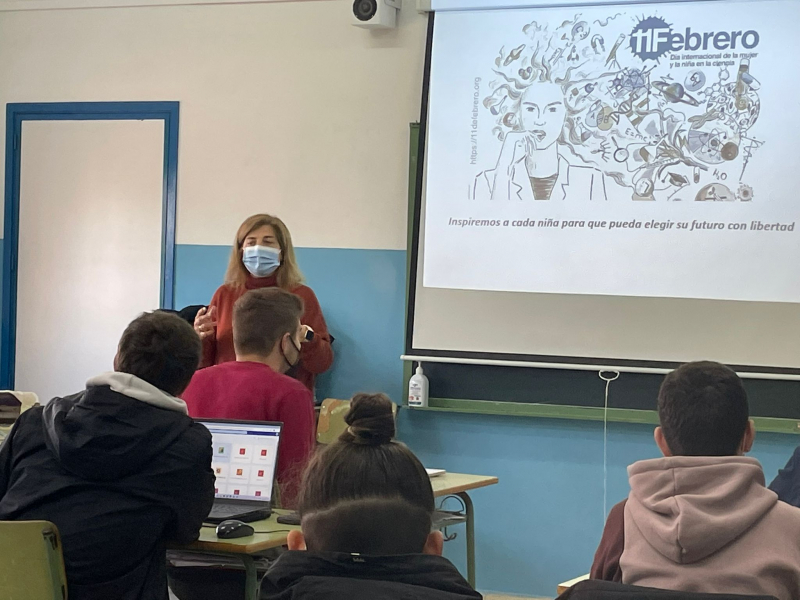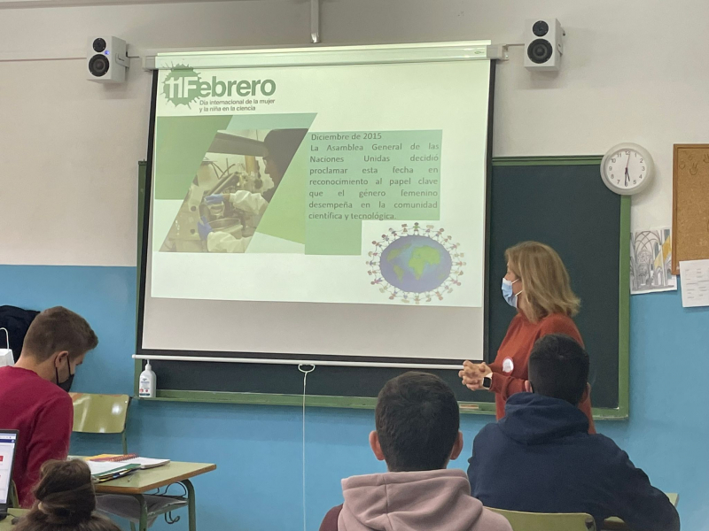 Nuestros alumnos de tercero y cuarto de Secundaria celebran el Día Internacional de la Mujer y la Niña en la Ciencia gracias a la colaboración de Teresa Cristina Rojas Ruiz, especialista en el estudio de materiales por Microscopia electrónica de transmisión del Instituto de Ciencias Materiales de Sevilla.